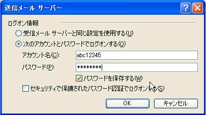 その下の「セキュリティで保護されたパスワード認証でログオンする」の項目はチェックしないでください。これは一般のAPOP(暗号化によるPOP接続)のことではありません。Microsoftが独自に提唱している方式で、実際には採用しているサーバーはほとんどありませんので無視してください。